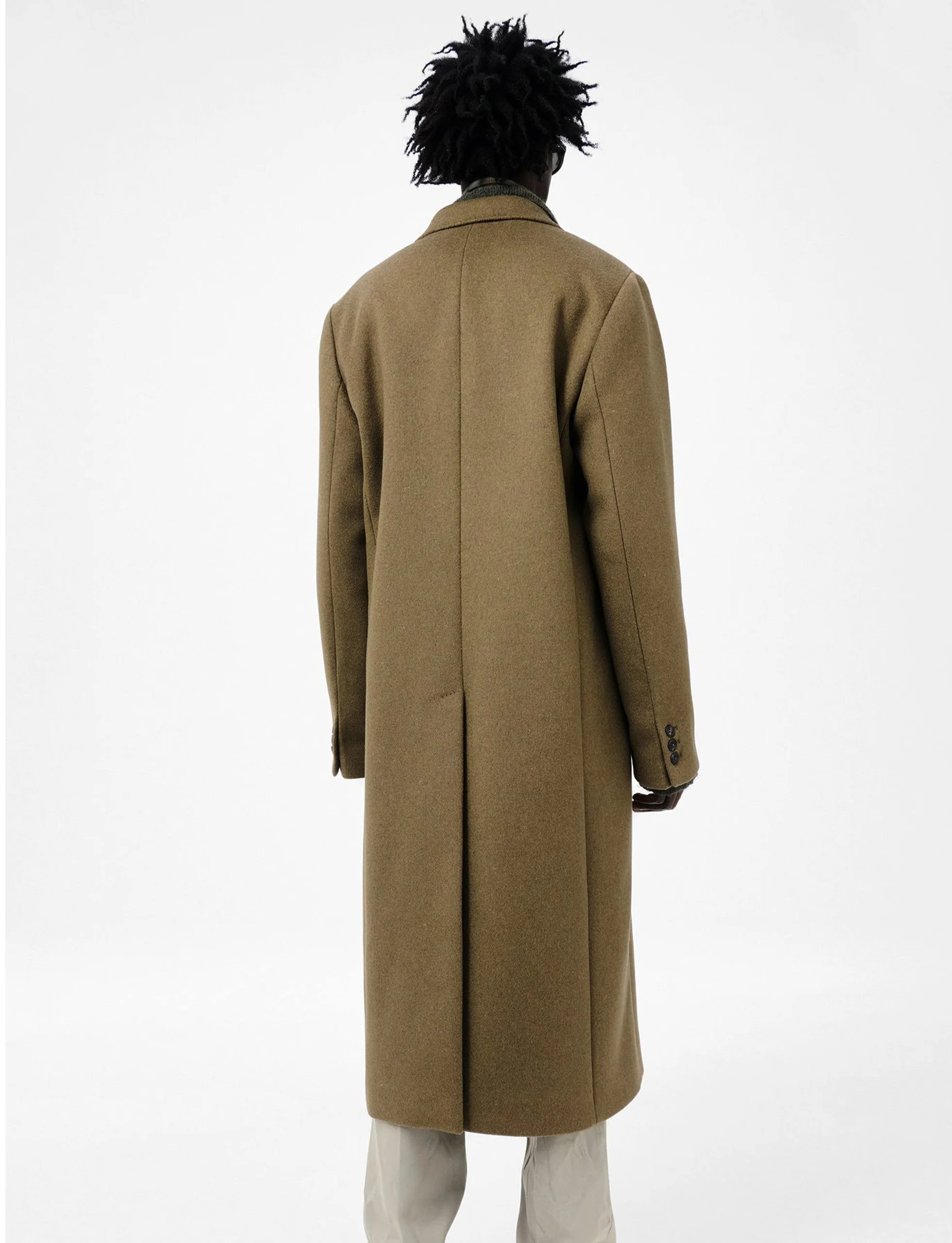 Our Robe Overcoat in Disruptive Moss Kilo Melton. Produced in Italian wool and polyamide fabric, the men's Robe Overcoat has a generous, relaxed fit with an unconstructed design and features darted shaping, a notched lapel, single-breasted styling with wrap over fastening, horn buttons, welt chest pocket, button cuffs, patch pockets and full lining.